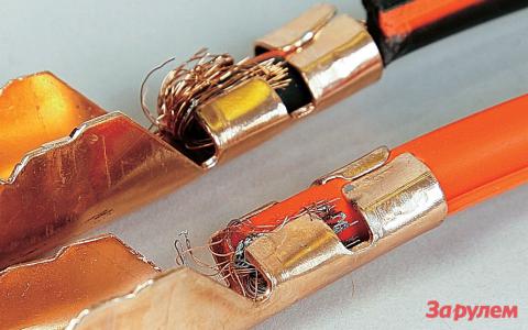 В этих проводах контакт в месте обжима пропал через пару секунд. Но даже с пол-оборота пустить двигатель вы все равно не смогли бы, поскольку на проводе потерялось 6,4 В. На сильном морозе провод немного задубел, но выдержал.